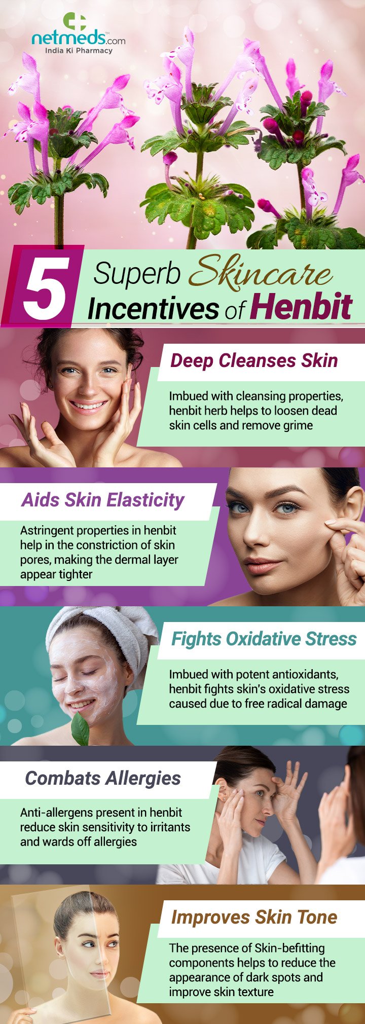 A fabulous astringent, antiseptic, and potent anti-inflammatory, henbit works amazingly when it is used as a salve, lotion, or as a poultice for treating cuts, fighting skin disorders, and curing skin problems. Foray into this infographic to know more about it and why you should use it on your skin: