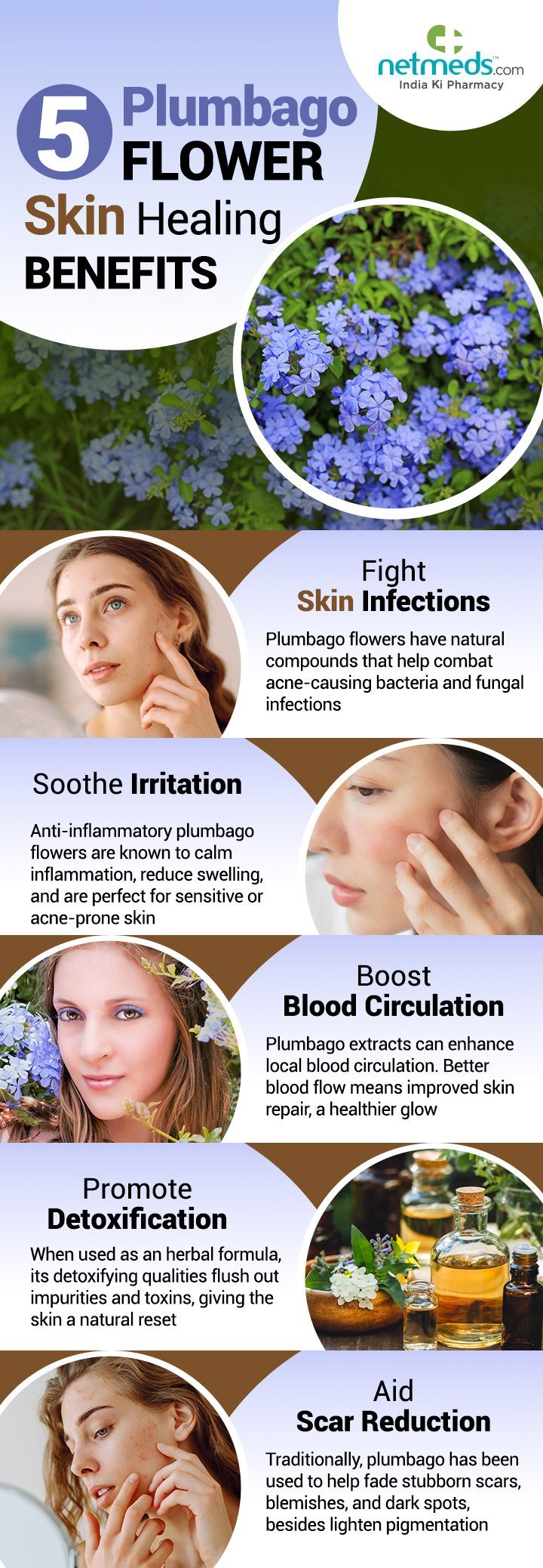 Red, angry pimples or mysterious skin flare-ups? Plumbago is a potent floral ingredient your skin might thank you for, if you use it right. Foray into this infographic to know what makes this vibrant blue flower a game-changer for your skin.